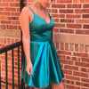 Spaghetti Straps Backless V-Neck Homecoming Dress, Cheap Satin A-Line Homecoming Dress, D1279
