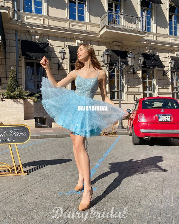 Sparkly A-line Backless Tulle Gorgeous Homecoming Dress, FC4614 Sparkly A-line Backless Tulle Gorgeous Homecoming Dress, FC4614