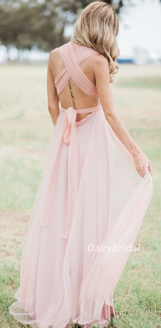 Convertible Bridesmaid Dress, Tulle Bridesmaid Dress, Backless Bridesmaid Dress, Cheap Bridesmaid Dress, Pink Bridesmaid Dress, DA875