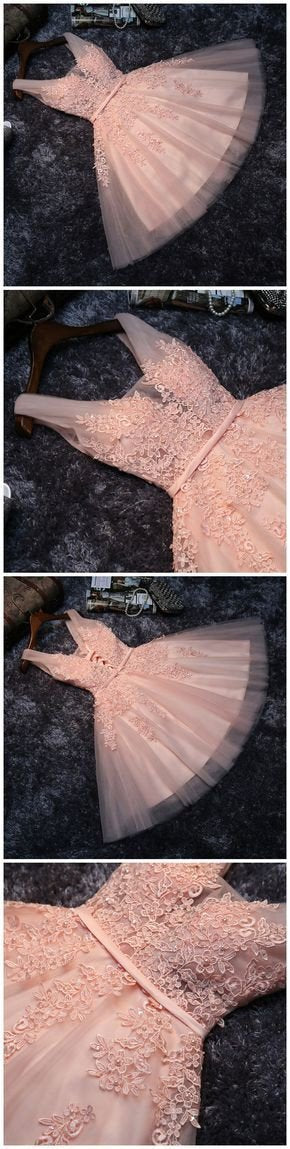 New Arrival Princess Lace Appliqued Tulle Homecoming Dress,Blush Pink Short Bridesmaid Dresses,Short Prom Dresses,220035