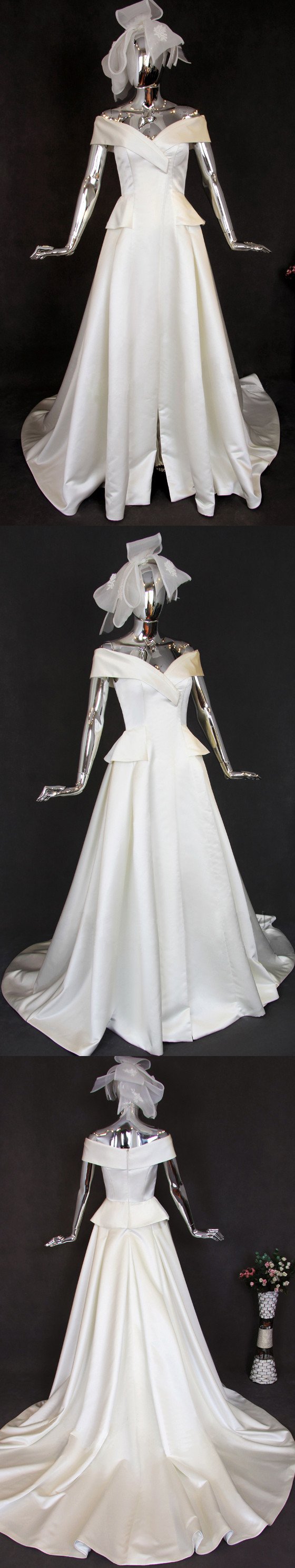 Off the Shoulder Split Ivory Long Wedding Dress with Short Train, 220002 Off the Shoulder Split Ivory Long Wedding Dress with Short Train, 220002