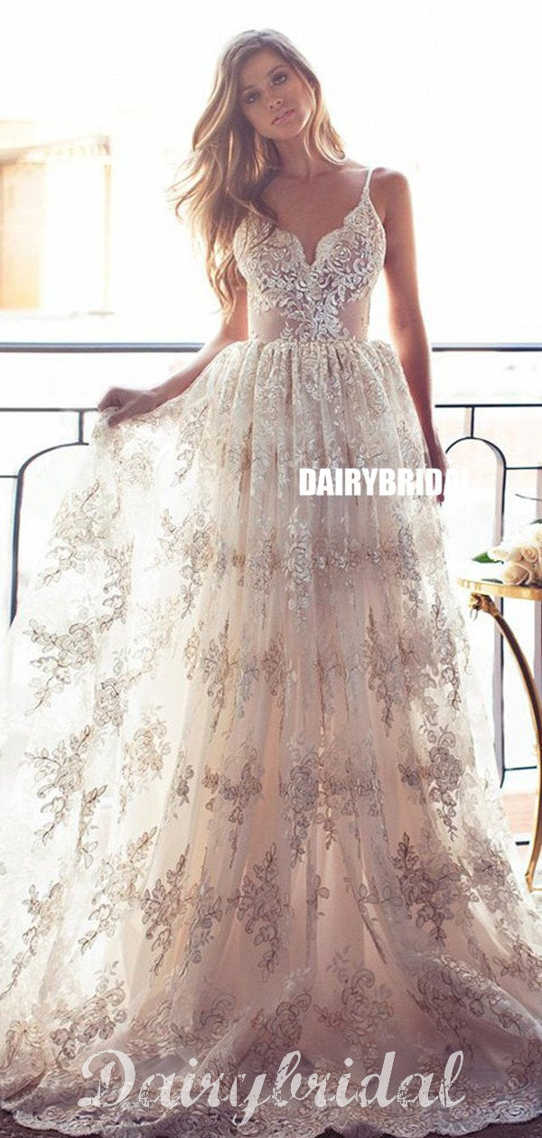 Charming Lace Backless Wedding Dresses, Unique Tulle Wedding Dresses, D903 Charming Lace Backless Wedding Dresses, Unique Tulle Wedding Dresses, D903