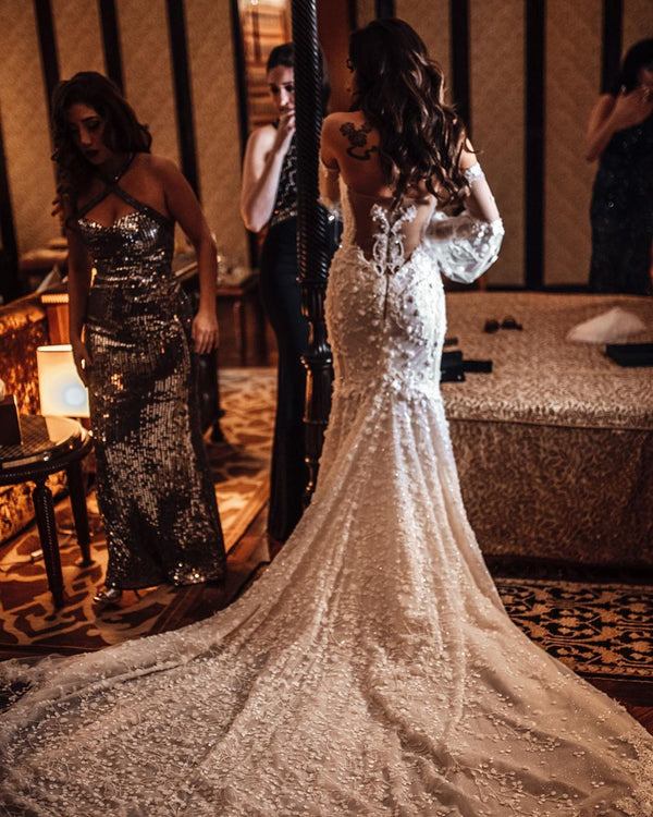Charming Mermaid Lace Backless Long Sleeves Sweetheart Wedding Dresses, FC4283 Charming Mermaid Lace Backless Long Sleeves Sweetheart Wedding Dresses, FC4283