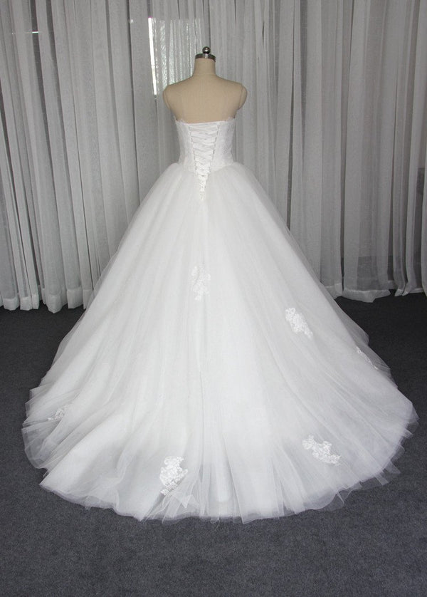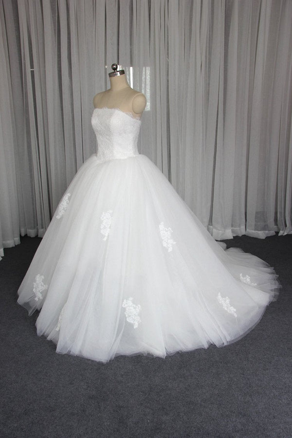 Gorgeous Strapless A line Custom Affordable Lace Wedding Bridal Dresse