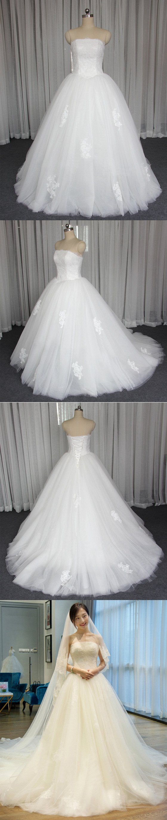 Gorgeous Strapless A line Custom Affordable Lace Wedding Bridal Dresses, WD0093