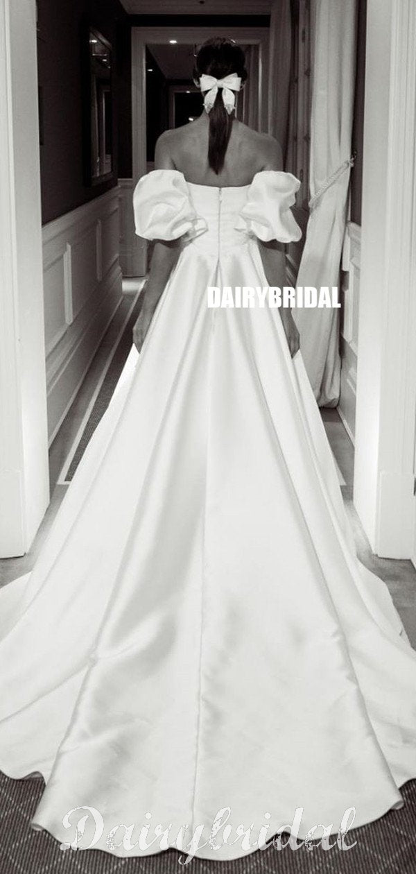 Elegant A-line Satin Floor-Length Straight Neckline Wedding Dresses, FC4022 Elegant A-line Satin Floor-Length Straight Neckline Wedding Dresses, FC4022