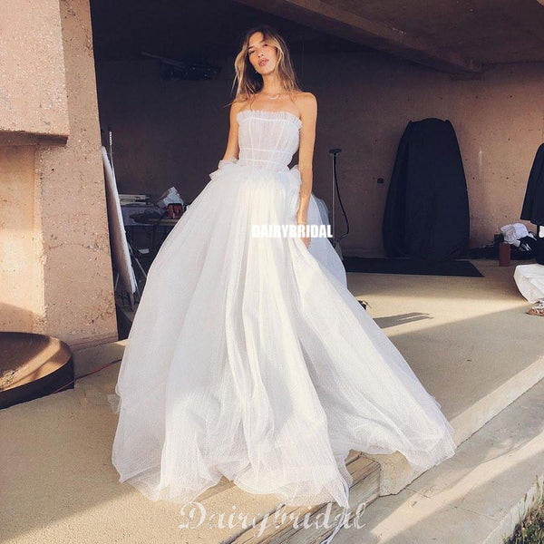 Honest A-line Tulle Straight Neckine Backless Wedding Dress, FC4689 Honest A-line Tulle Straight Neckine Backless Wedding Dress, FC4689