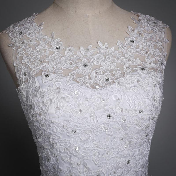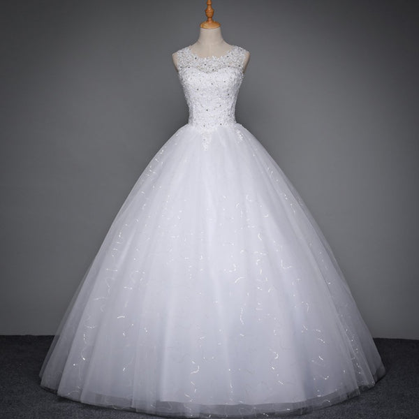 Long Wedding Dress, High Quality Open-Back Wedding Dress, Lace Bridal Dress, Tulle Wedding Dress, Sleeveless Wedding Dress, Sequin Wedding Dress, LB0336