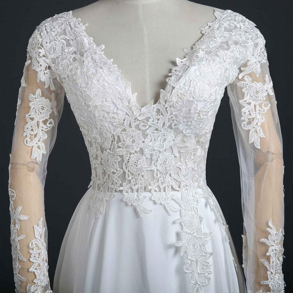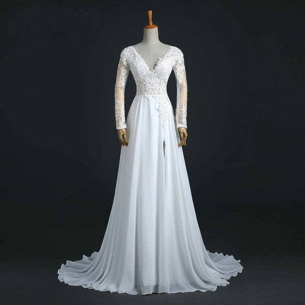 Long Wedding Dress, Lace Wedding Dress, Chiffon Wedding Dress, Side Split Bridal Dress, Long Sleeve Wedding Dress, Custom Made Wedding Dress, LB0271 Long Wedding Dress, Lace Wedding Dress, Chiffon Wedding Dress, Side Split Bridal Dress, Long Sleeve Wedding Dress, Custom Made Wedding Dress, LB0271