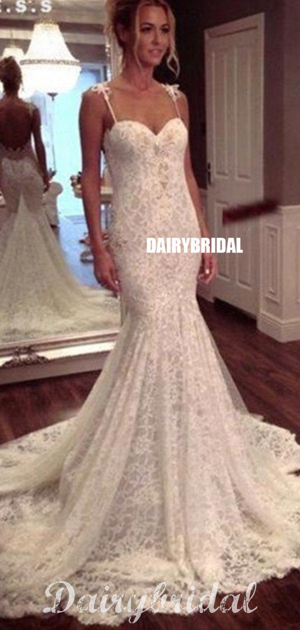Long Wedding Dress, Lace Wedding Dress, Mermaid Bridal Dress, Backless