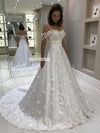 Off Shoulder Charming Lace Backless A-line Satin Wedding Dresses, FC3771 Off Shoulder Charming Lace Backless A-line Satin Wedding Dresses, FC3771
