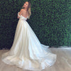 Off Shoulder Simple A-Line Slit Backless Lace Cheap Wedding Dresses, FC1538