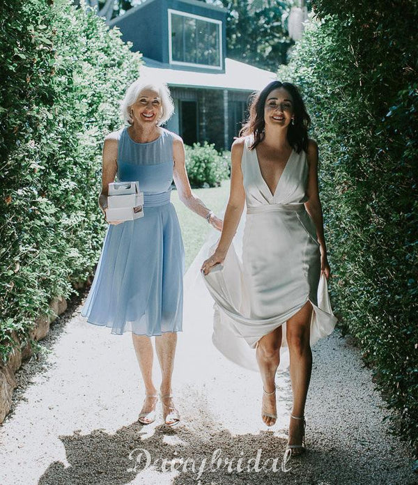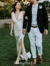 Simple Deep V-Neck Elastic Satin Backless Slit Wedding Dresses, FC1681 Simple Deep V-Neck Elastic Satin Backless Slit Wedding Dresses, FC1681
