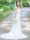 Vintage White Open-Back Mermaid Sleeveless Satin Chiffon Wedding Dresses, FC1530