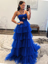 Royal Blue Sweetheart A-line Backless Tulle Long Dresses, FC7045