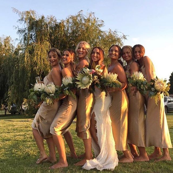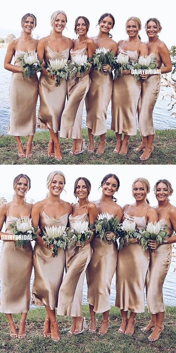 Spaghetti Straps Backless Tea-Length Silk Elastic Satin Bridesmaid Dress, FC2375 Spaghetti Straps Backless Tea-Length Silk Elastic Satin Bridesmaid Dress, FC2375