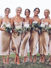 Spaghetti Straps Backless Tea-Length Silk Elastic Satin Bridesmaid Dress, FC2375